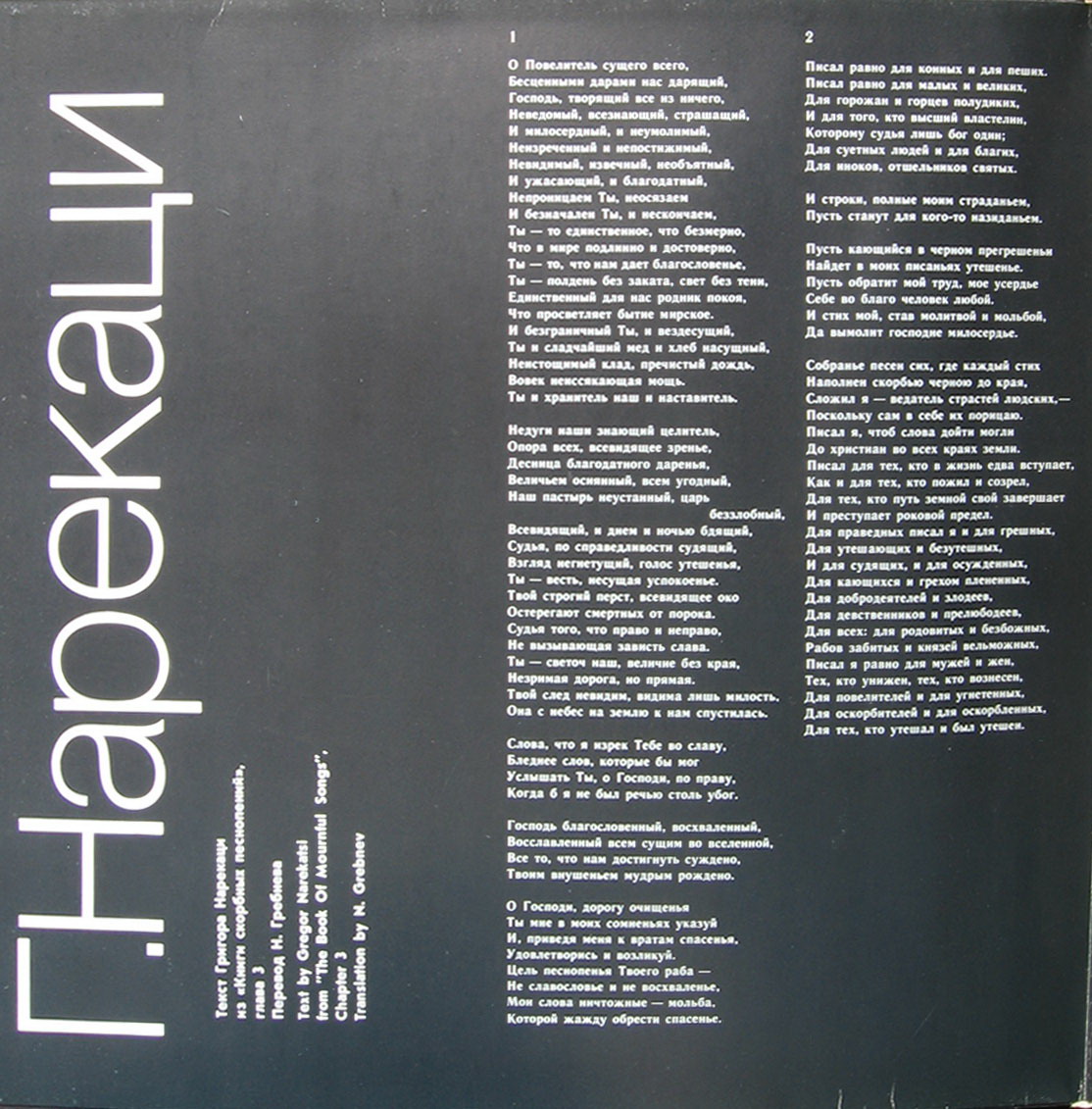 | Название :: | Концерт для хора в 4-х частях на текст Грегора Нарекаци из "Книги скорбных песнопений" (В.Полянский) |