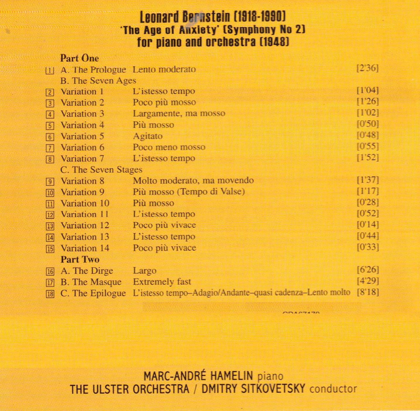 | Название :: | The Age of Anxiety (Symphony No.2) for piano and orchestra (М-А. Хамелин, Д.Ситковецкий) |