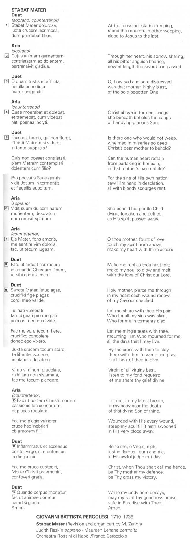 | info :: | Judith Raskin (soprano), Maureen Lehane (contralto), Orchestra Rossini di Napoli/ Franco Caracciolo |