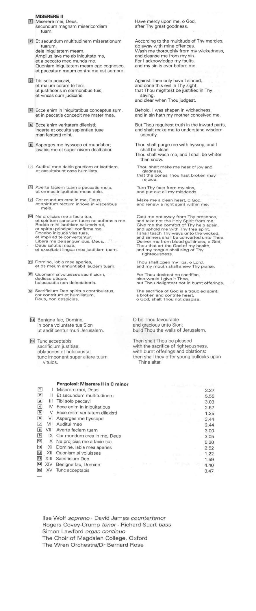| info :: | Ilse Wolf (soprano), David James (countertenor), Rogers Covey-Crump (tenor), Richard Suart (bass), Simon Lawford (organ, continuo), The Choir of Magdalen College, Oxford, The Wren Orchestra/Dr. Bernard Rose |