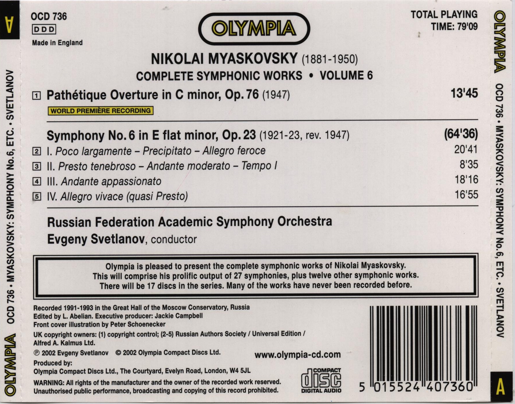 | Название :: | 06_Симфония No.6 es-moll, Op. 23 (Светланов) |